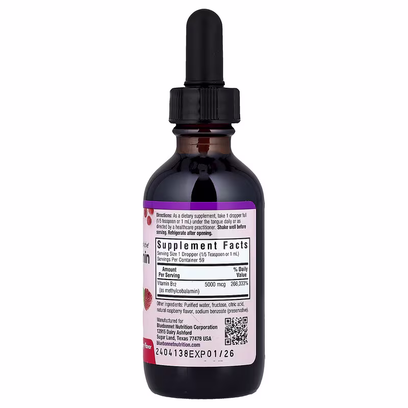 Bluebonnet’s Liquid CellularActive® Methylcobalamin Vitamin B12 5000 mcg is formulated with fast-acting vitamin B12 as methylcobalamin, a coenzyme form of B12, that helps to support cellular energy production and nervous system health in a delicious raspberry flavour.