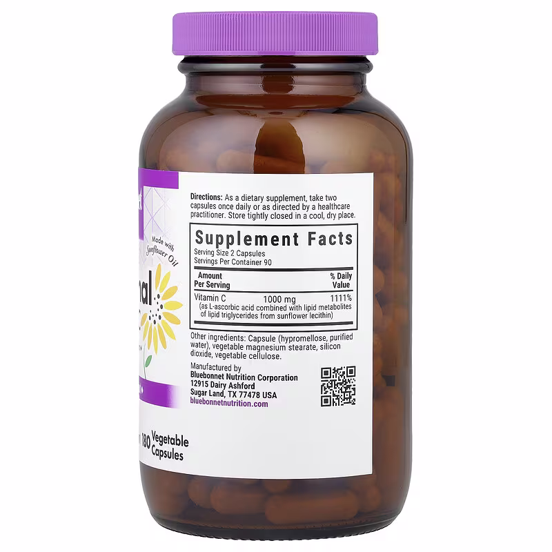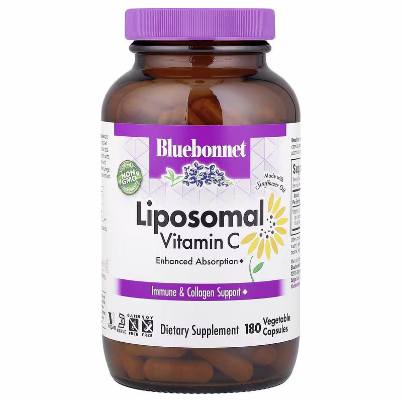 Bluebonnet’s Liposomal Vitamin C Vegetable Capsules are formulated with Liposomal PureWay-Câ„¢ a proprietary, patented and clinically tested form of vitamin C that fuses ascorbic acid and citrus bioflavonoids to lipid metabolites such as fatty acids, esters, and fatty alcohols for better delivery, absorption and uptake. Vitamin C helps to protect cells against oxidative damage from free radicals, and supports immune health, joint comfort and collagen synthesis.