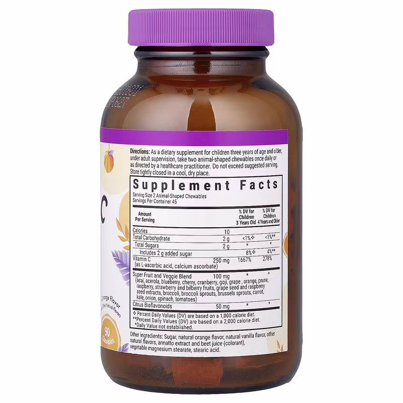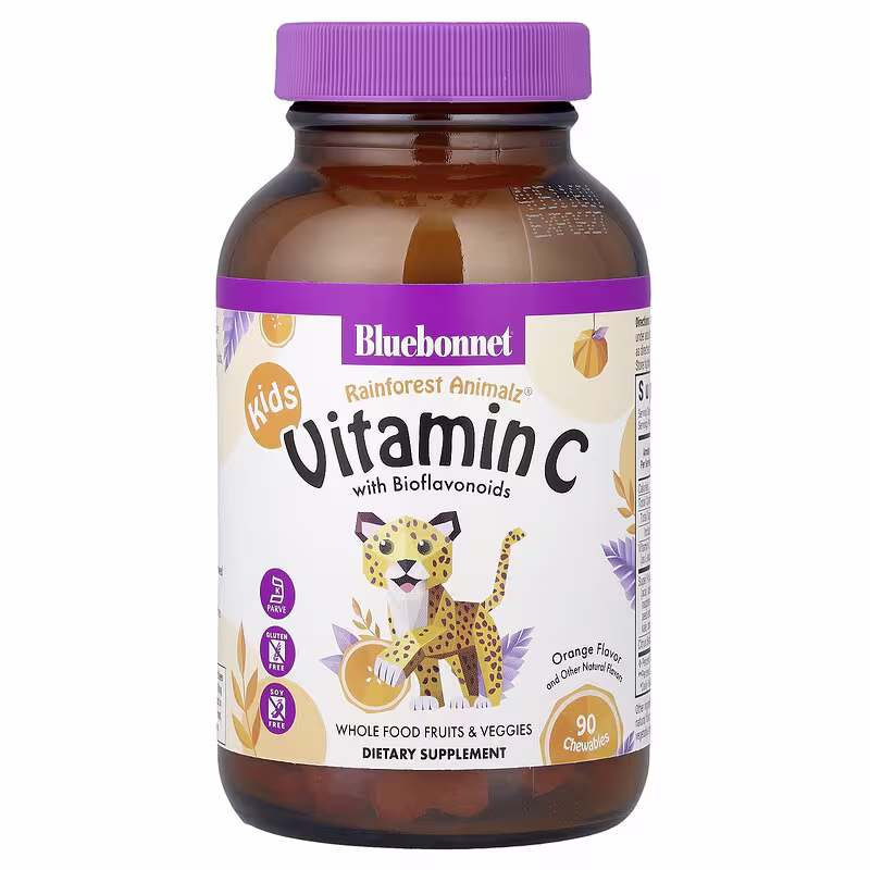 Bluebonnet’s Rainforest Animalz® Vitamin C Chewablesare formulated with a buffered form of vitamin C from calcium ascorbate as well as L-ascorbic acid in a base of bioflavonoids, super fruits and vegetables to support immune health and bridge the nutrient gap often found in children’s diets.