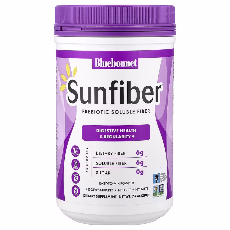 Bluebonnet’s SunfiberĀ® PowderĀ delivers plant-based dietary fiber from partially hydrolyzed guar gum to help support bowel regularity while also providing prebiotic benefits for gastrointestinal health. This soluble and slow-fermenting fiber is well tolerated and suitable for those following a low-FODMAP diet. When mixed in water, it dissolves quickly and is tasteless, colorless, and odorless allowing for versatile use.