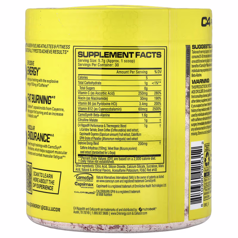 C4 / Cellucor, RippedĀ®, Pre-Workout, Cherry Limeade, 6 oz (171 g)