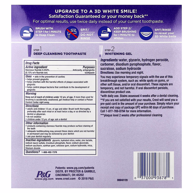 Crest, 3D Whiteâ„¢, Daily Whitening 2-Step Treatment, 1 Set