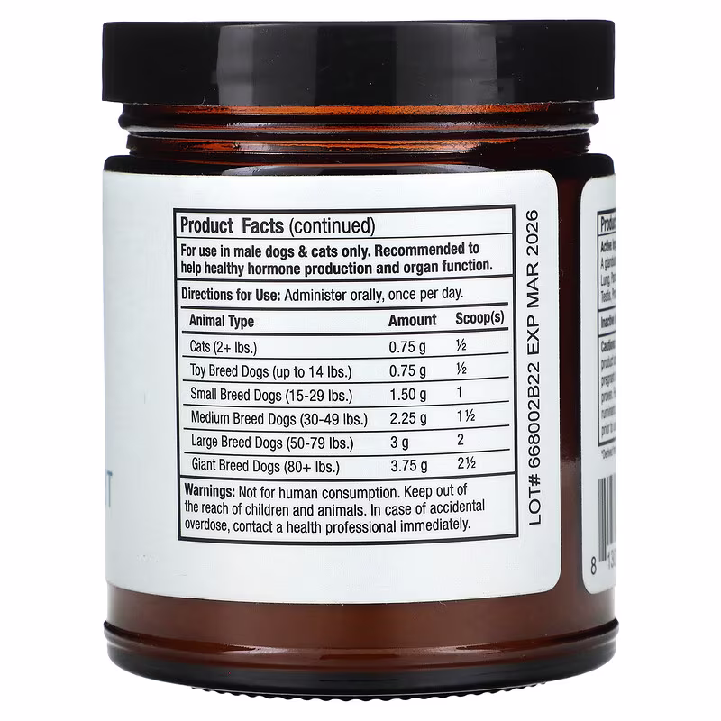 | A Â glandular blend of* [Liver, cerebrum, stomach, kidney, heart, lung, pancreas, spleen, duodenum, thyroid, adrenal, thymus, testis, prostate, pituitary, hypothalamus, lymphatic] | 1.5 g |