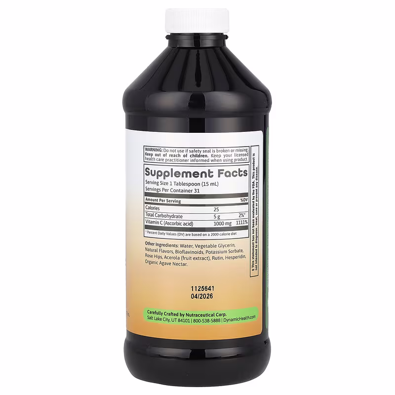 Water, vegetable glycerin, natural flavors, bioflavonoids, potassium sorbate, rose hips, acerola (fruit extract), rutin, hesperidin,