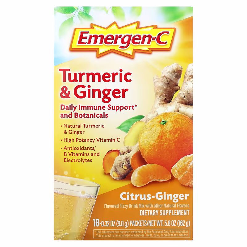 Emergen-C, Turmeric & Ginger, Citrus-Ginger, 18 Packets, 0.32 oz (9 g) Each