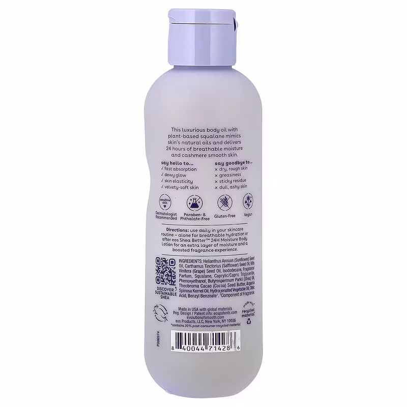 Use daily in your skincare routine – alone for breathable hydration or after eos Shea Betterâ„¢ 24H Moisture Body Lotion for an extra layer of moisture and a boosted fragrance experience.