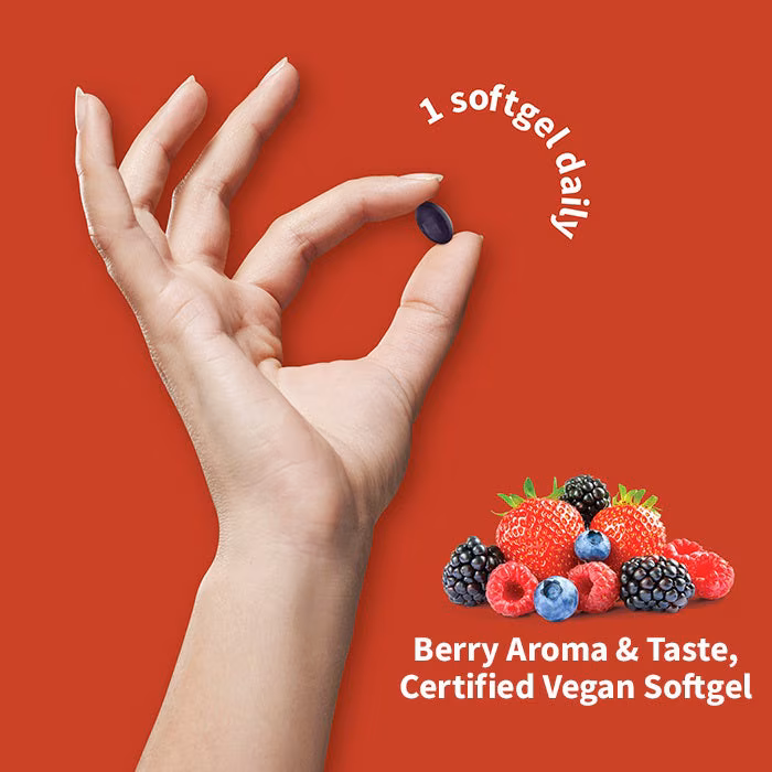 Just one, easy-to-swallow, berry-essence, vegan softgel per day. I can do that!