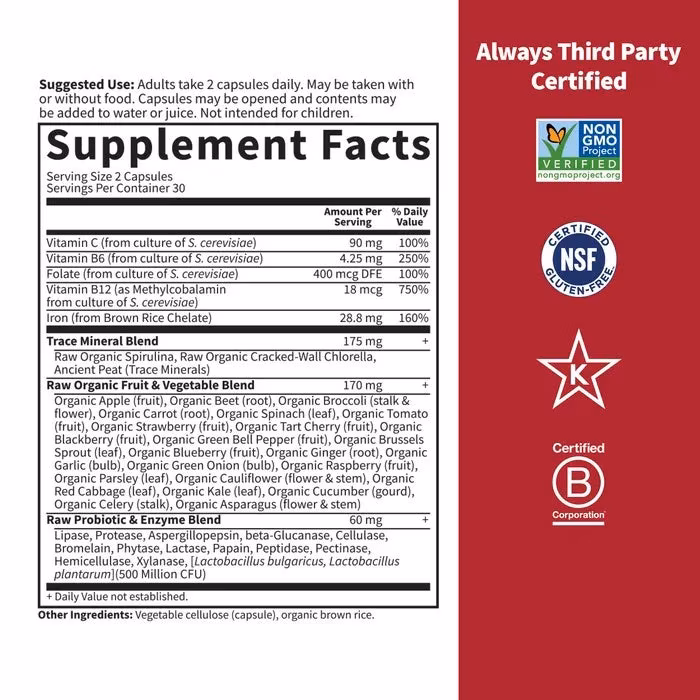 Made with only gentle whole foods, this healthy blood supplement is easy-to-digest and stomach-friendlyâ€