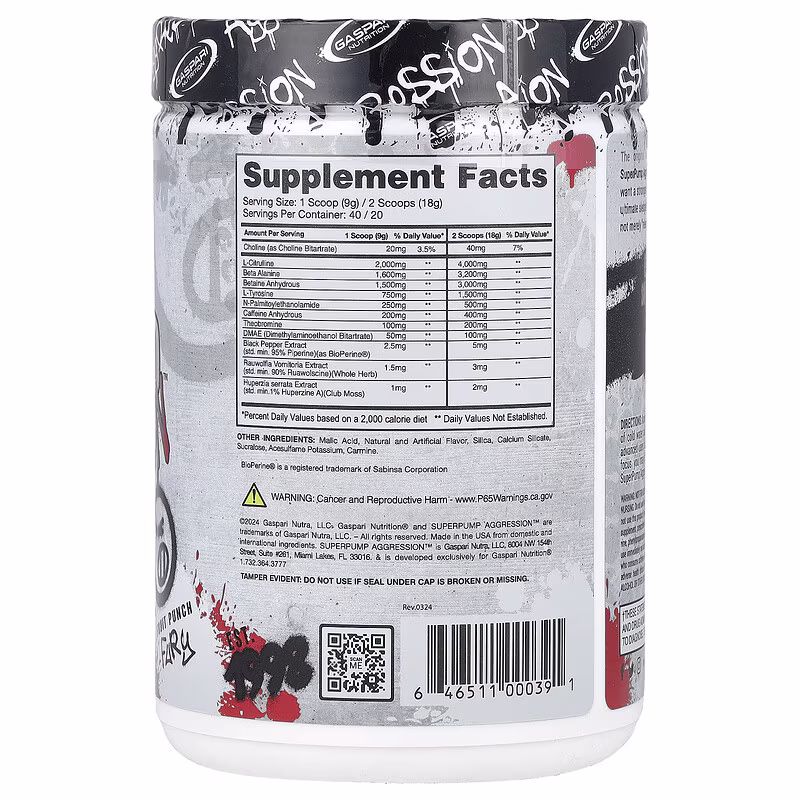 Gaspari Nutrition, SuperPump Aggression™ Pre-Workout, Fruit Punch Fury, 360 g