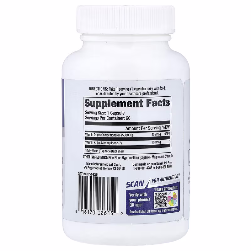 Meet your new daily essential: GAT Sport® Vitamin D3+K2. This isn’t just another supplement — it’s the foundation your body needs to thrive, perform, and stay strong. Imagine feeling unstoppable with the support of a dual-action formula that helps strengthen your bones, protect your heart, and boost your immune system.