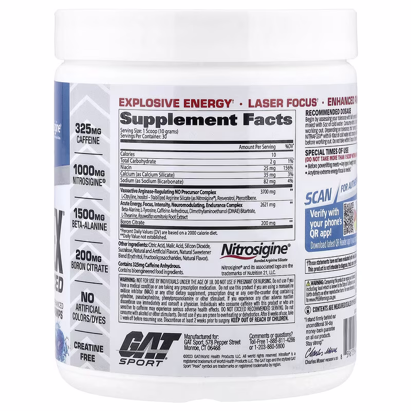 Note: One serving contains 325 mg Caffeine, 1000 mg of Nitroarginine®, and a clinically researched dose of Boron.