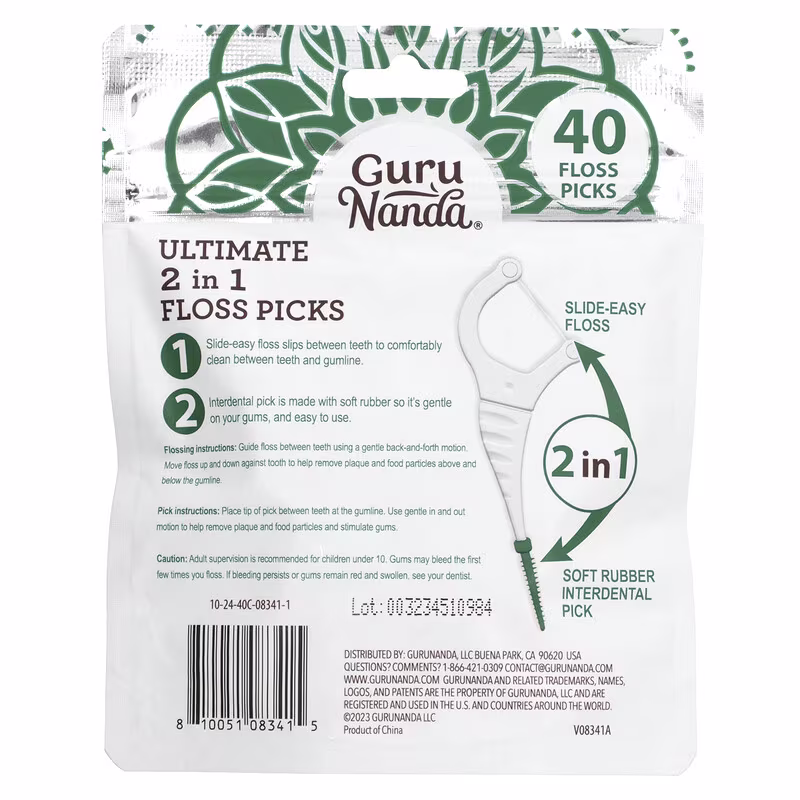 Flossing instructions:Â Guide floss between teeth using a gentle back-and-forth motion. Move floss up and down against tooth to help remove plaque and food particles above and below the gumline.