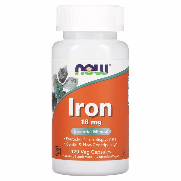 Iron is an essential mineral that plays central roles in energy production, immune system function, and neurological health. Iron is an essential component of haemoglobin, a molecule that transports oxygen to the cells of the body and myoglobin, which binds oxygen used in muscle tissues. NOW use Ferrochel Iron Bisglycinate, which has clinically demonstrated superior absorption and is well tolerated because it is gentle and non-constipating.