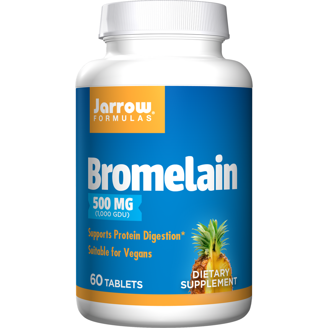 Jarrow Formulas® Bromelain is a systematically-bioavailable protein-digesting (proteolytic) enzyme (extracted from pineapple sap and stem) that supports digestion and joint health.