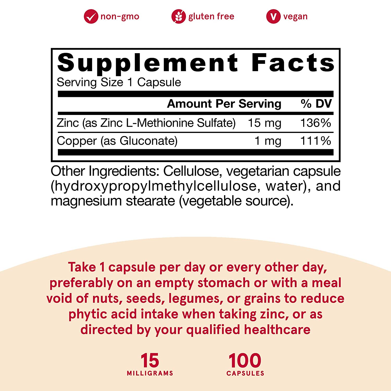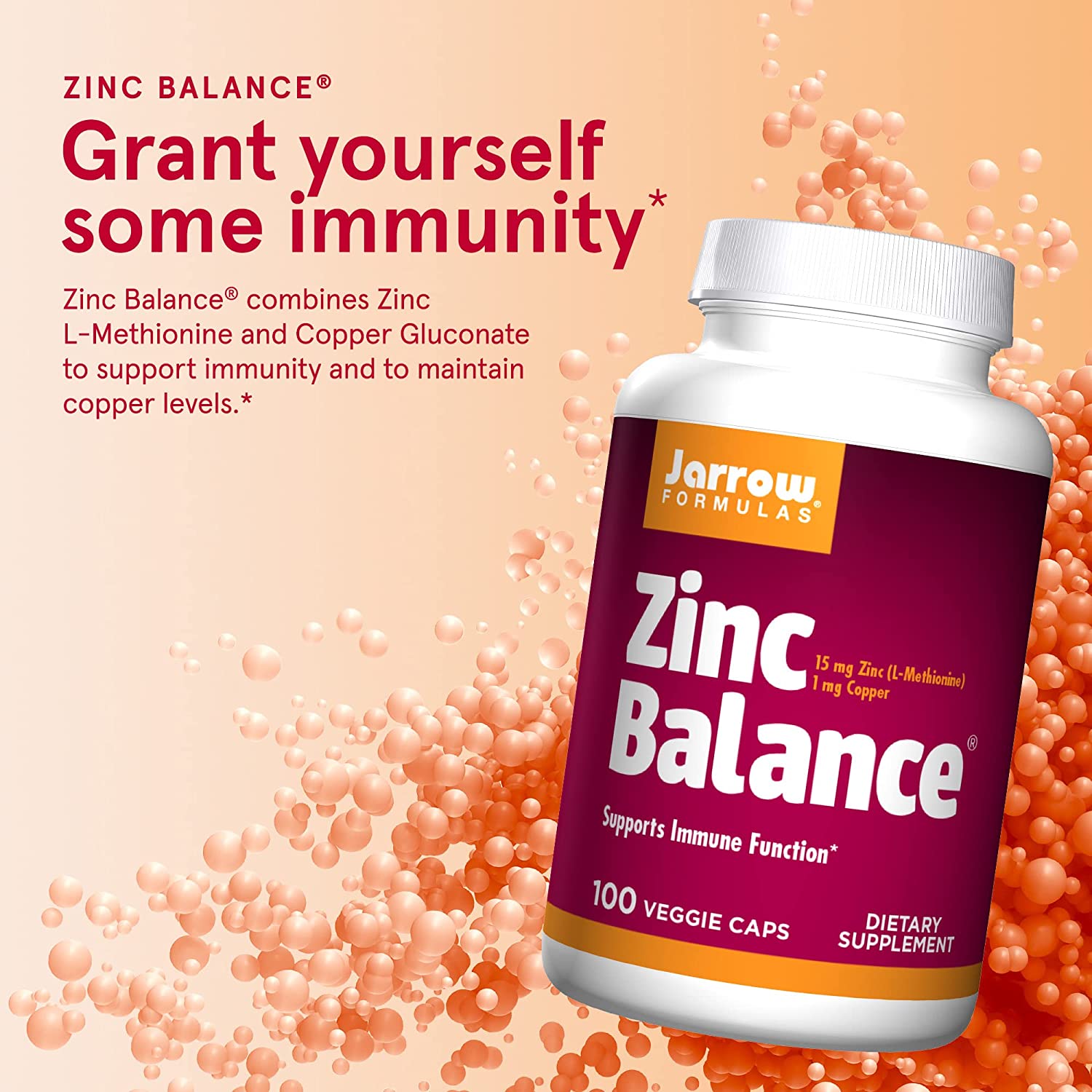 - Immune Support: Zinc Balance combines Zinc L-Methionine and Copper Gluconate (15:1 ratio); Zinc L-Methionine allows zinc absorption with phytate and fiber in vegetables; Zinc supports immune function