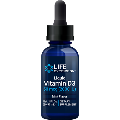 Life Extension, Liquid Vitamin D3, Mint Flavor, 2,000 IU, 1 fl oz (29.57 ml)