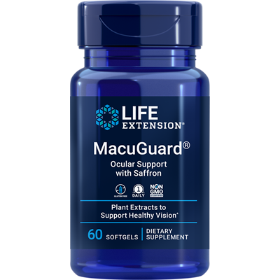 MacuGuard® Ocular Support with Saffron & Astaxanthin provides important nutrients that help protect the eye’s delicate photoreceptor cells, promote macular and retinal health, help fight eye fatigue and support healthy night vision.