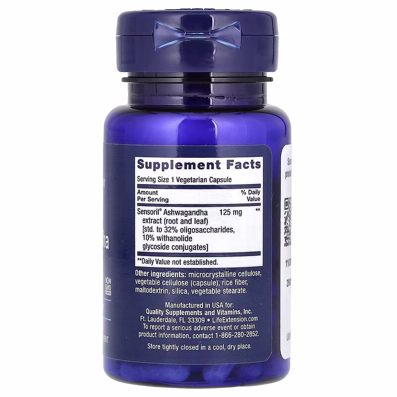 Life Extension, Optimised Ashwagandha, 60 Vegetarian Capsules (125 mg per Capsule)
