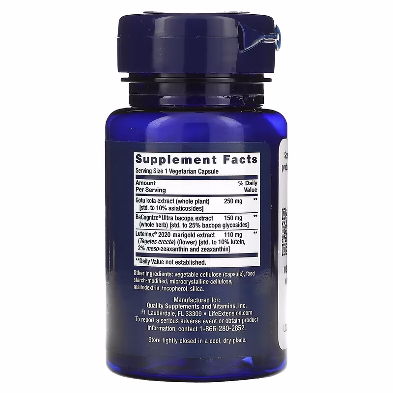 A “nootropic” is a nutrient that helps enhance learning, cognition and mental processing speed. Our Quick Brain formula combines three clinically-studied ingredients that promote neural processing speed/fast thinking, memory and concentration: carotenoid-rich marigold extract, standardised gotu kola extract and whole-herb BaCognize® bacopa extract.