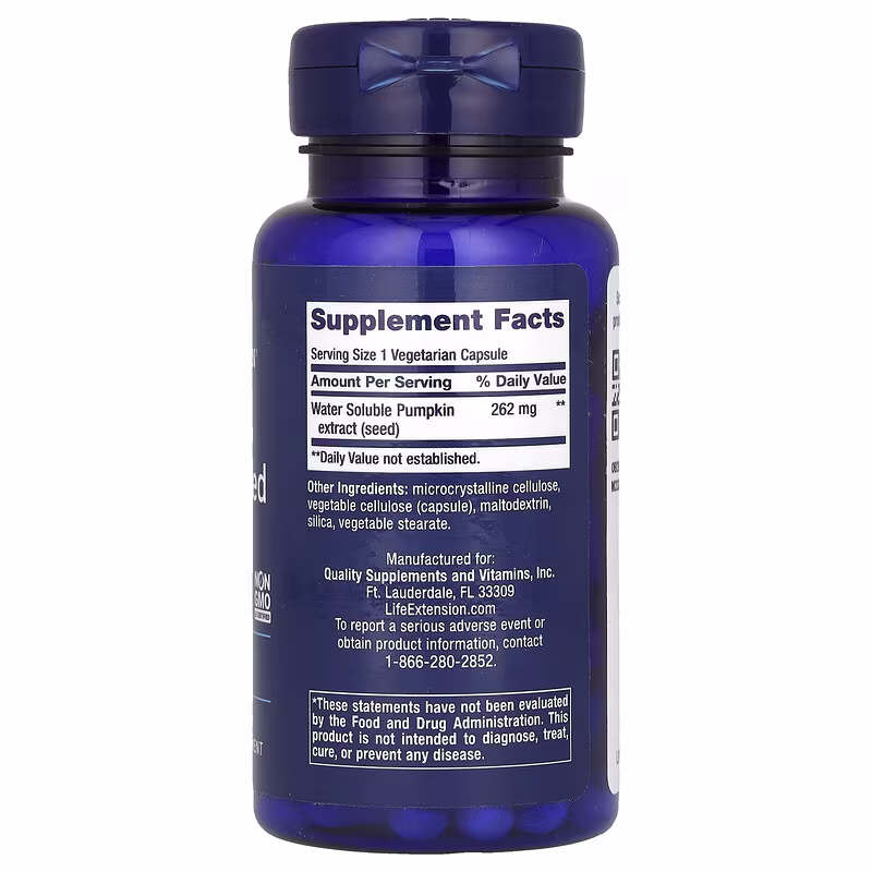 Life Extension, Water-Soluble Pumpkin Seed Extract, 60 Vegetarian Capsules (262 mg per Capsule)