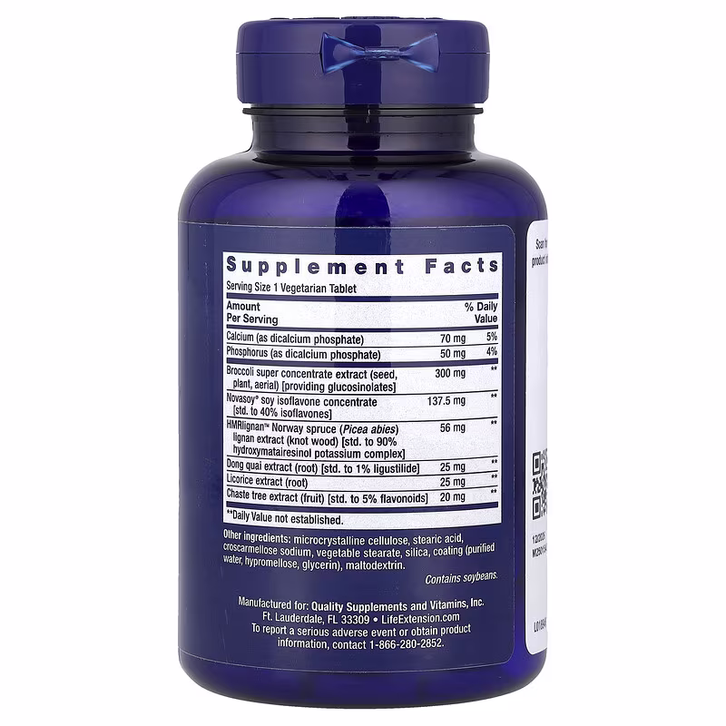 - Contains soya isoflavones, dong quai and chasteberry extracts