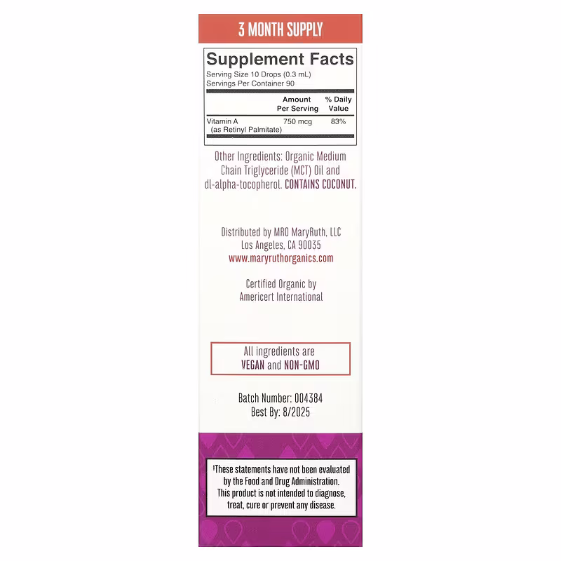 Support your skin health, immune system and overall health & wellness with our vitamin a organic liquid drops. With organic vitamin A in easy-to-take liquid form, you can simply take it by mouth, add it to a glass of water, your favorite morning juice, or a smoothie!