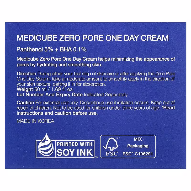 Medicube Zero Pore One Day Cream helps minimizing the appearance of pores by hydrating and smoothing skin.