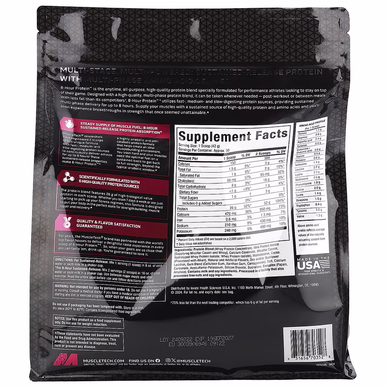 MuscleTech® researchers have engineered 2 scoops of this unique formula with fast-, medium-, and slow-digesting protein sources, to continuously deliver aminos for up to 8 hours! These sustained-release properties make 8-Hour Protein™♦ a highly anabolic and anti-catabolic protein formula that helps create an ideal muscle building environment. You train hard and your muscles need the optimal fuel on a sustained basis to get back to full strength, beyond the typical anabolic window.