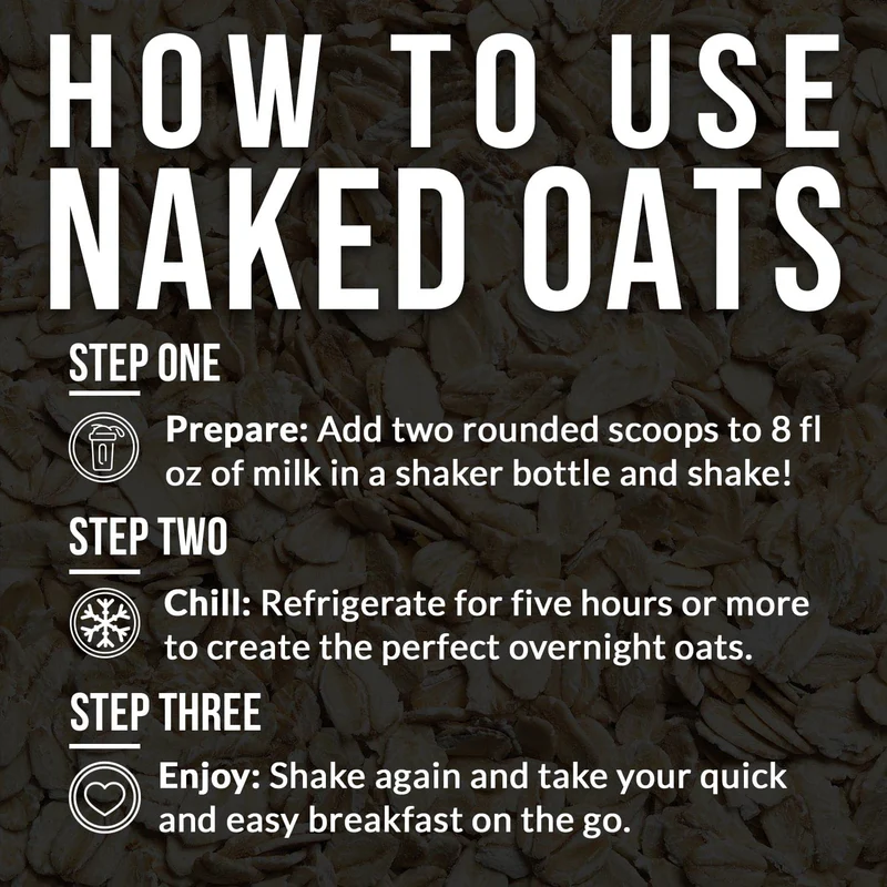 Naked Oats combines premium whey protein with gluten-free rolled oats for a delicious shake or oatmeal that support lean muscle, stable energy, and optimal digestion. With less than thirty seconds of prep time, you can have a high performance breakfast rich in protein and fiber ready to go when you wake up.