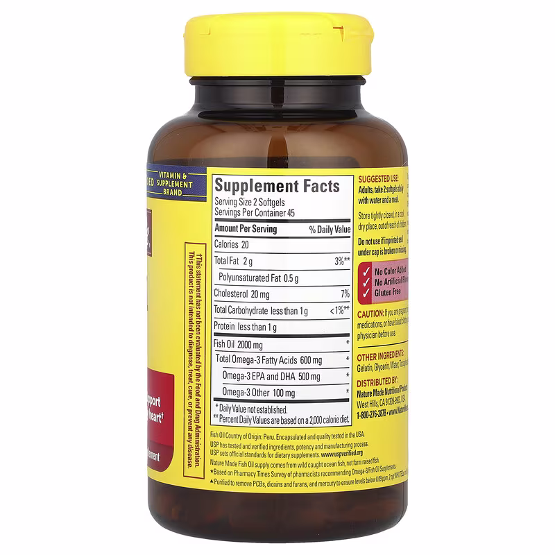 Fish Oil Country of Origin: Peru. Encapsulated and quality tested in the USA.