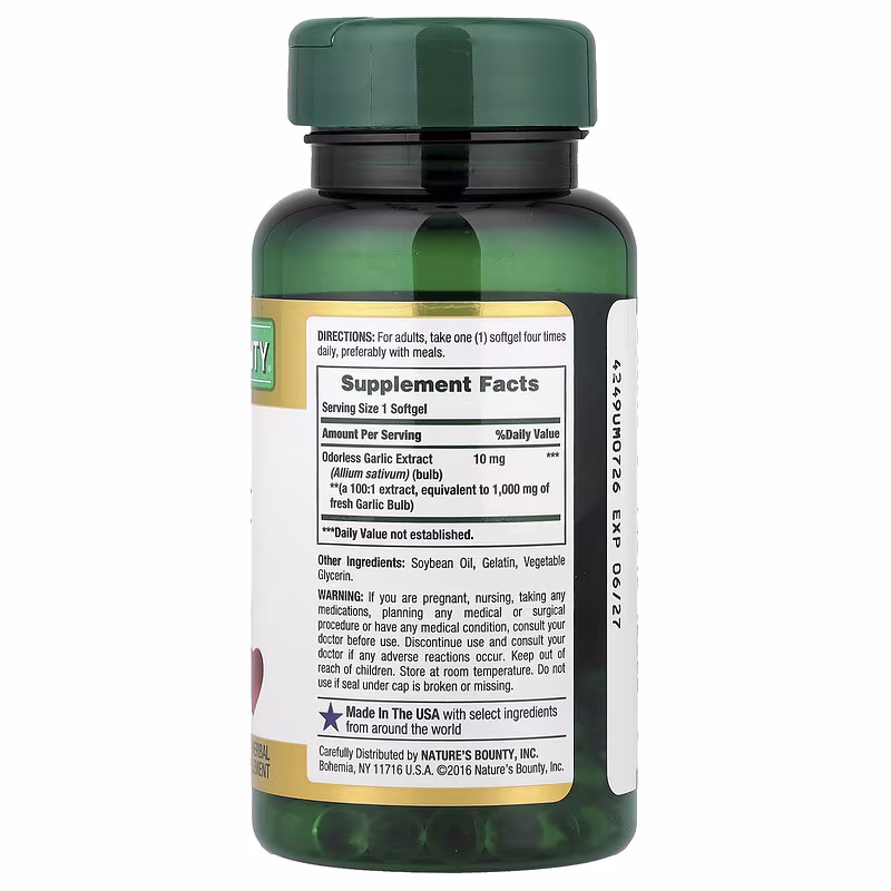 Nature’s Bounty, Garlic Extract, 1,000 mg, 100 Rapid Release Softgels