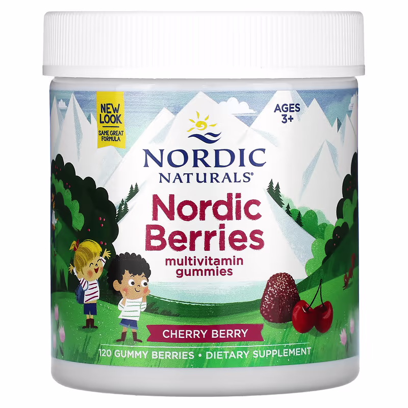 Nordic Naturals, Nordic Berries Multivitamin Gummies, Ages 3+, Cherry Berry, 120 Gummy Berries