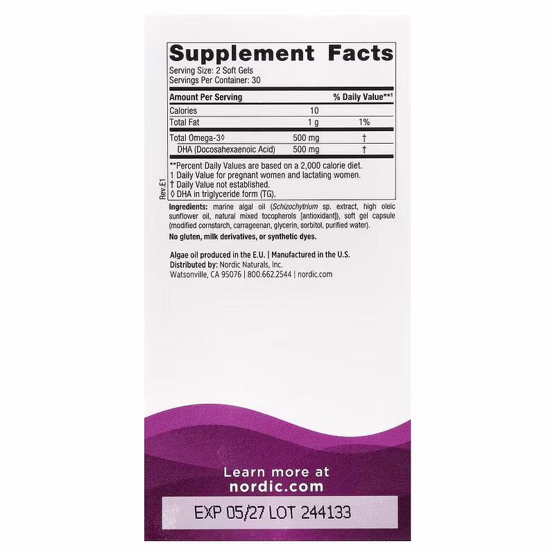 Every batch of Nordic Naturals algae oil is tested by a third-party certified lab for environmental toxins, including heavy metals. The algae oil is in the triglyceride form for better results+ and meets or exceeds the strictest international standards for purity and freshness.