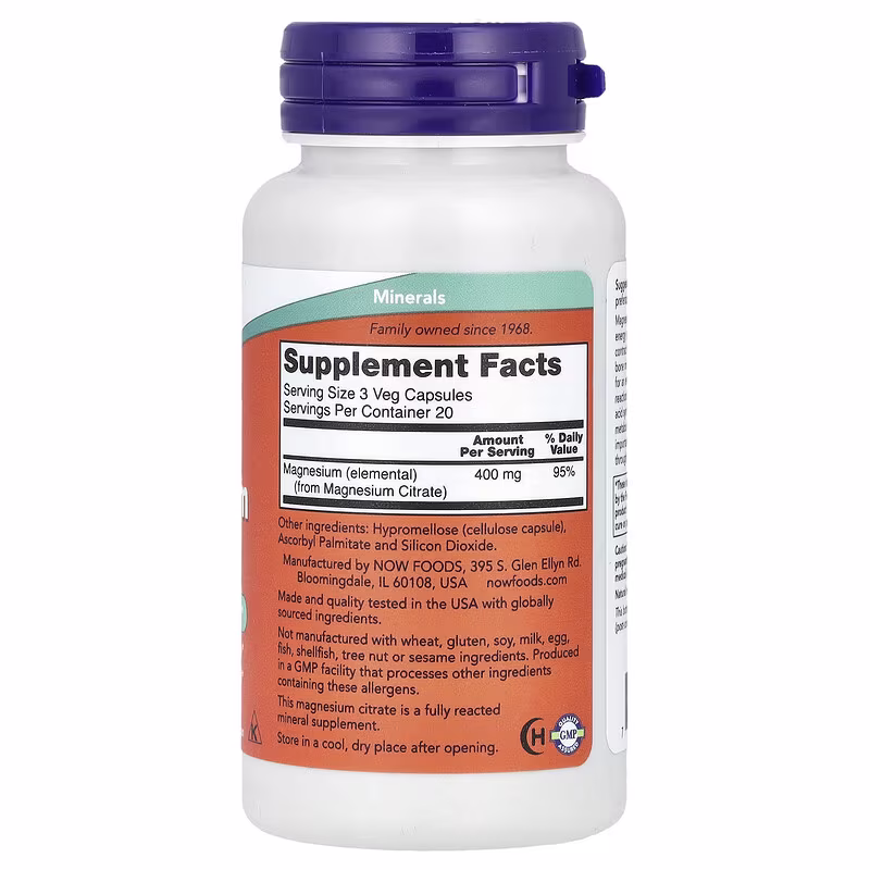 Magnesium (elemental) (from magnesium citrate) | 400 mg | 95% |