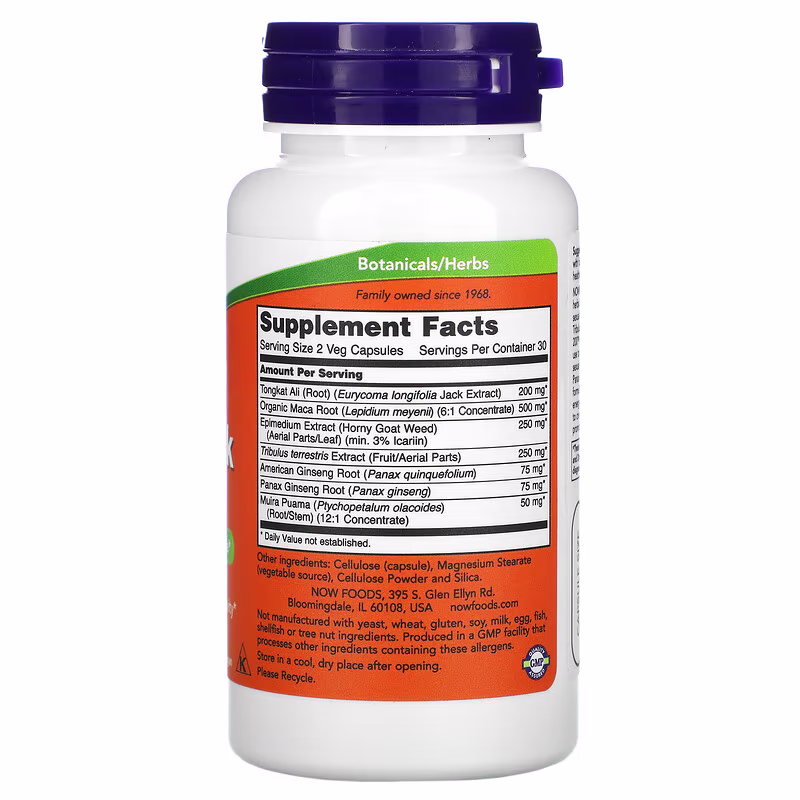 Now® TestoJack 200â„¢ is a combination of natural herbal ingredients known to support a man’s healthy sexual activity and overall vitality. With Tongkat Ali, Tribulus, Maca and Horny Goat Weed, TestoJack 200â„¢ is a targeted botanical formula that a man can use to maintain reproductive function, libido, and sexual performance. The addition of American and Panax Ginseng plus Muira Puama round out this formula through their ability to support sustained energy levels. This potent botanical formula helps to create a dynamic one-two punch for the overall promotion of reproductive health and sexual drive.