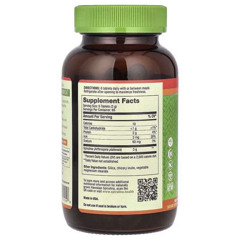 Naturally contains vitamins A, K, and B12, magnesium, phycocyanin, GLA, chlorophyll, and zeaxanthin.