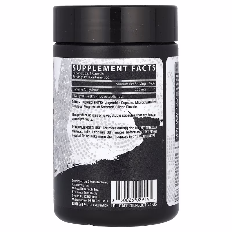 Conquer your day with a high energy boost from CAFFEINE 200. Each capsule delivers a potent 200 mg of fast-acting caffeine anhydrous for enhanced mental alertness, increased focus and reduced fatigue.