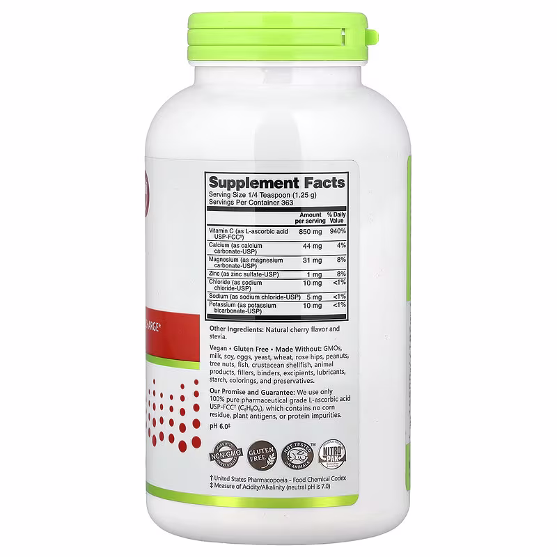NutriBiotic® Cherry Electro-C is an effervescent, vitamin C and electrolyte powder delivering 100% pharmaceutical grade vitamin C (L-ascorbic acid) and highly bioavailable electrolytes (calcium, magnesium, chloride, potassium, sodium, and zinc) in a readily soluble form.