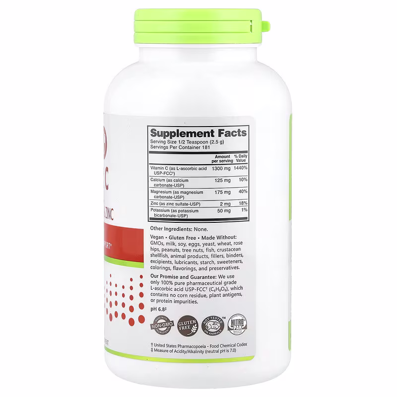 NutriBiotic® Hypo-Aller C is an effervescent powder combining 100% pharmaceutical grade L-ascorbic acid (vitamin C) with an array of highly bioavailable minerals, including calcium, magnesium, potassium, and zinc, in a readily soluble form.