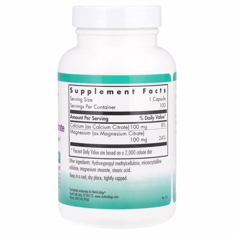 Nutricology, Calcium Magnesium Citrate, 100 Vegetarian Capsules