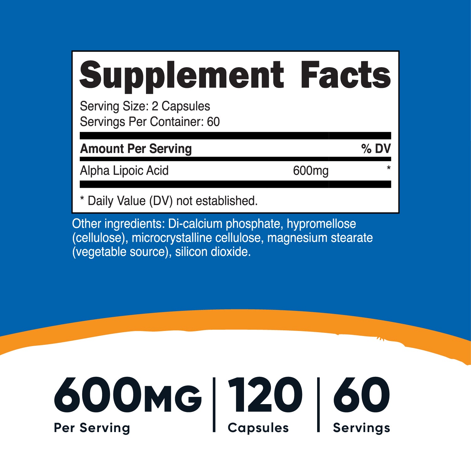 - 600mg Per Serving (300mg Per Capsule) of Alpha Lipoic Acid