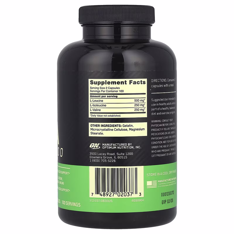 Optimum Nutrition, BCAA 1000, 200 Capsules (500 mg per Capsule)