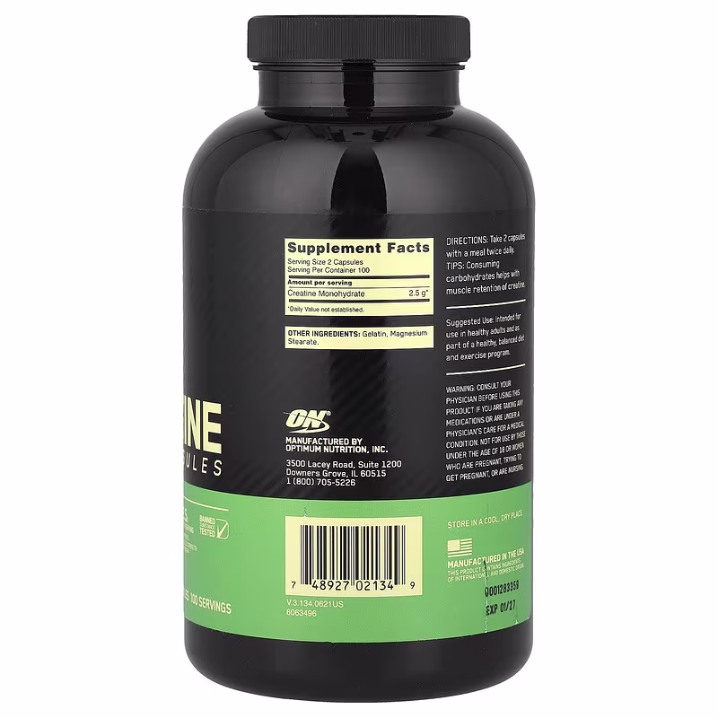 Take 2 capsules with a meal twice a day. Tips: Consuming carbohydrates helps with muscle retention of creatine.