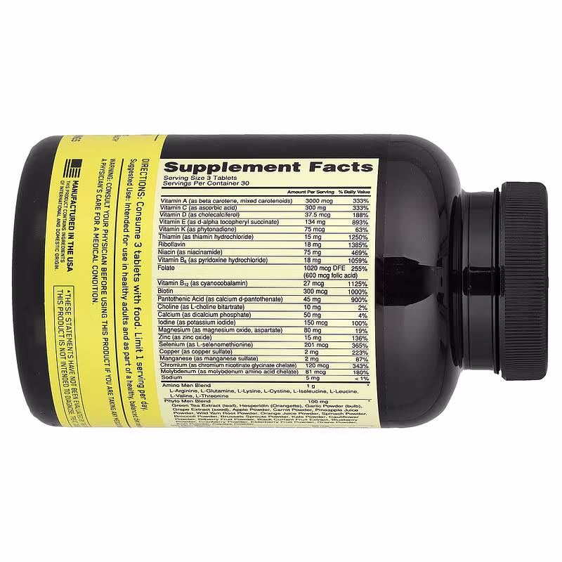 OPTI-MEN is more than a multi. Itās a nutrient optimisation system OPTI-MEN providing 75+ active ingredients in 4 blends specifically designed to support the nutrient needs of active men. Each 3-tablet serving provides free form amino acids, antioxidant vitamins A, C and E, essential minerals and botanical extracts in foundational amounts that can be built on by consuming a healthy, balanced diet.