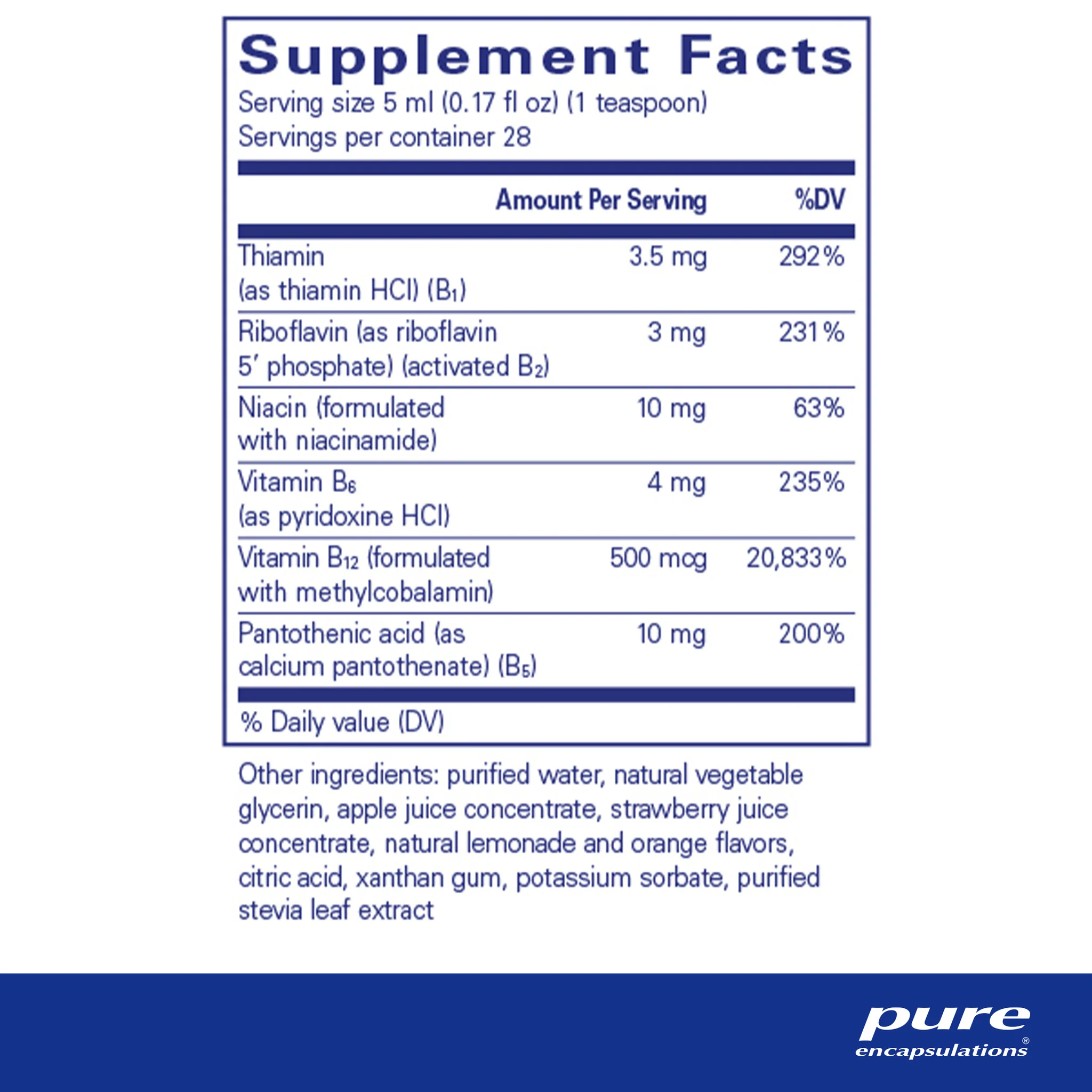 The great-tasting B-Complex Liquid offers a balanced combination of functionally interrelated B vitamins. B vitamins are specifically supportive of the nervous system, while also providing wide-ranging benefits, including helping to convert food into cellular energy.‡