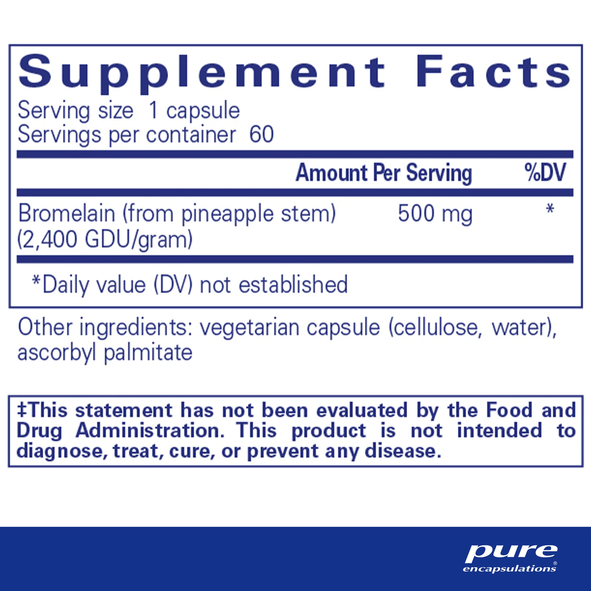 The pineapple plant offers digestive enzymes called bromelain. This enzyme is supportive of the bodyās digestive process, helping to break down proteins. Bromelain aids in the healthy functioning of the digestive system and supports musculoskeletal function.ā”