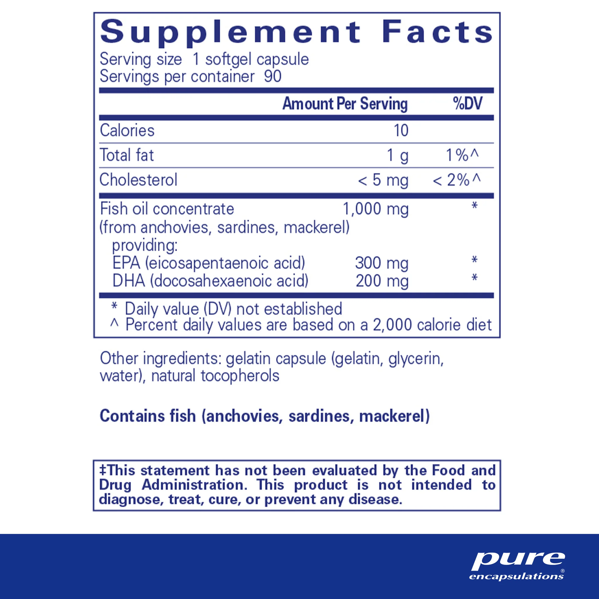 Our EPA/DHA Essentials supplement is an ultra-pure, microfiltered fish oil concentrate with 300 mg of EPA and 200 mg of DHA. These omega-3 fatty acids have been associated with numerous benefits, including cardiovascular health, healthy lipid metabolism, healthy immune response, joint comfort, blood flow, cognitive function, skin health and, daily wellness.‡