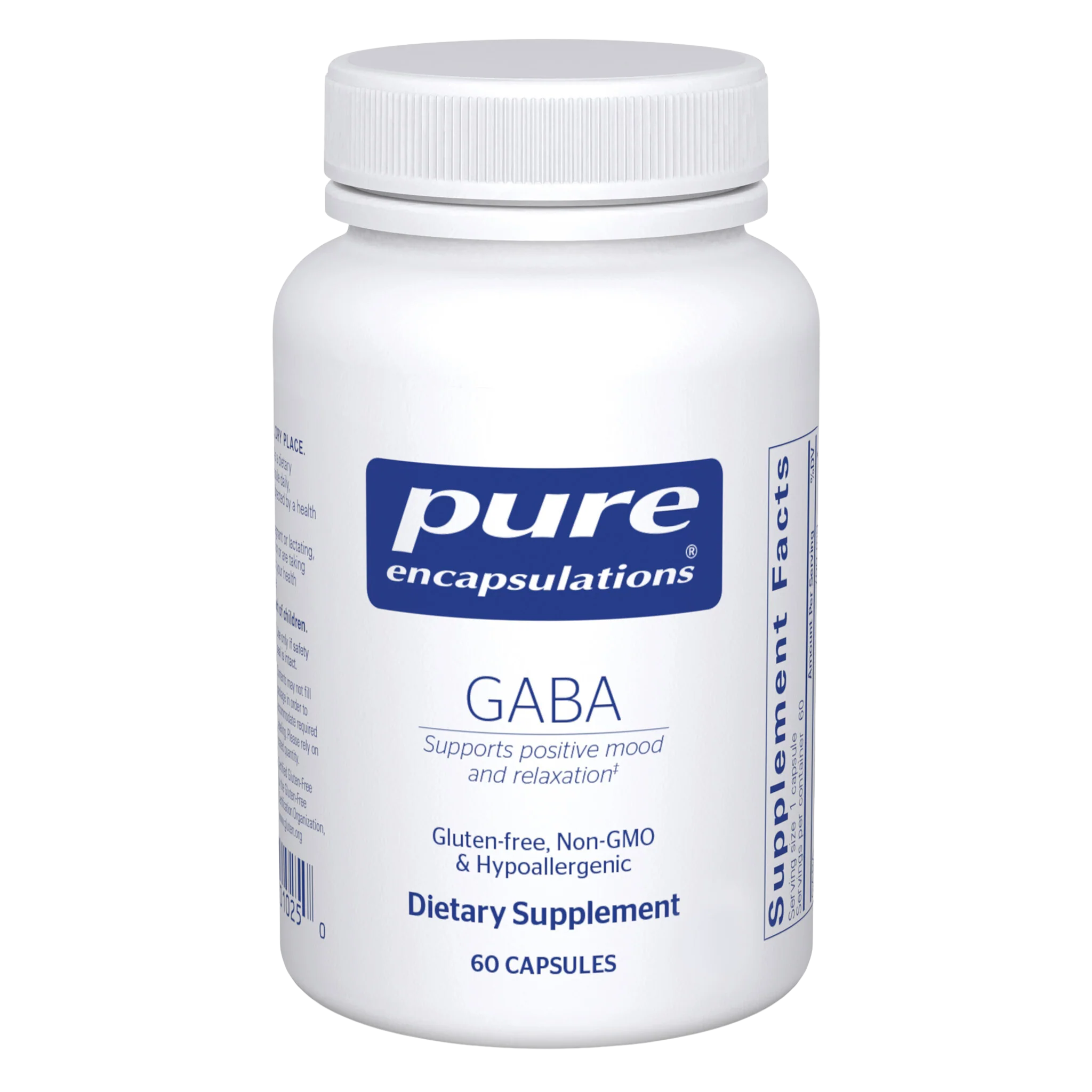 GABA, an essential amino acid, plays a key role in the central nervous system, regulating cell-to-cell communication. Healthy levels of GABA have been associated with positive mood. This GABA supplement promotes positive mood, supports relaxation, and moderates occasional stress.‡