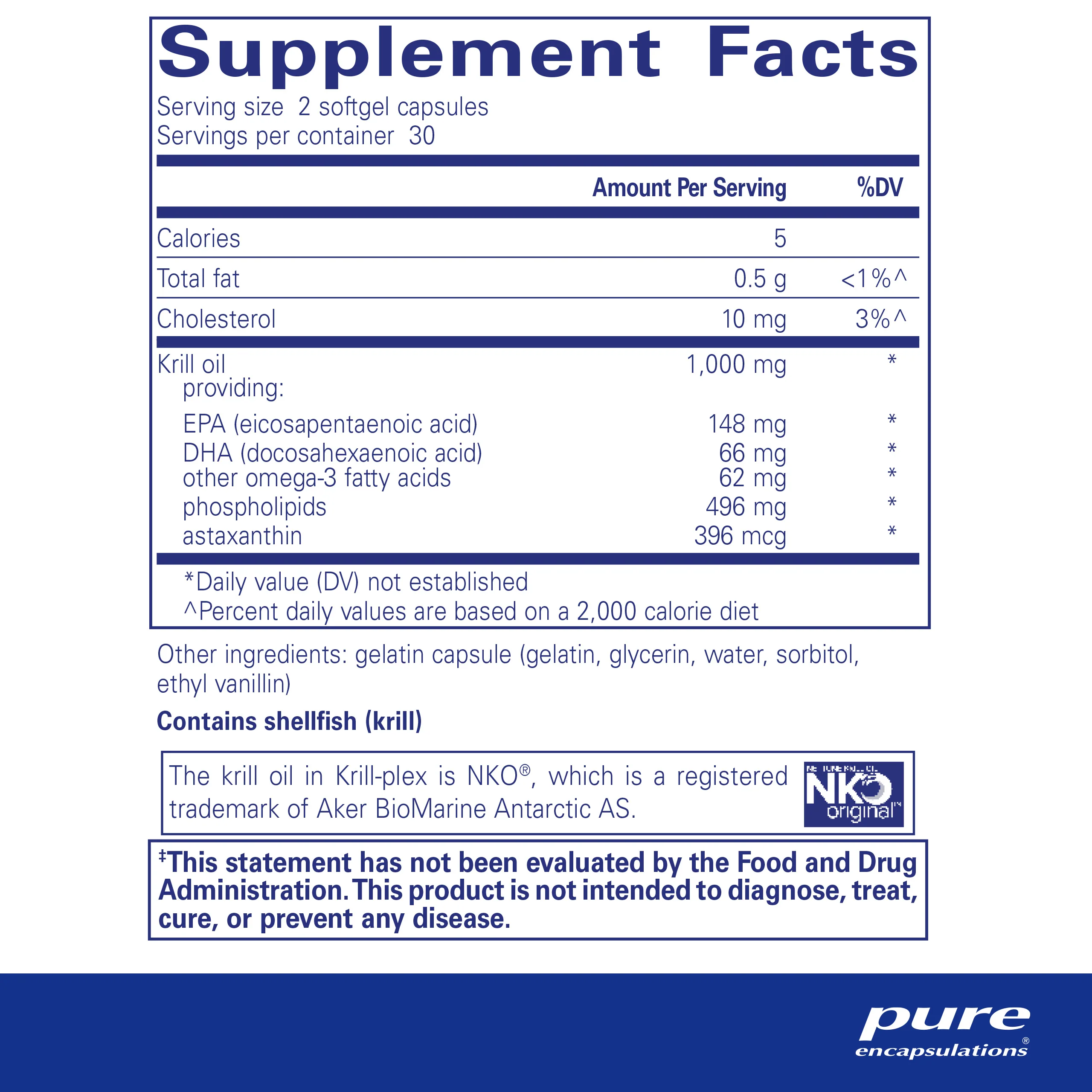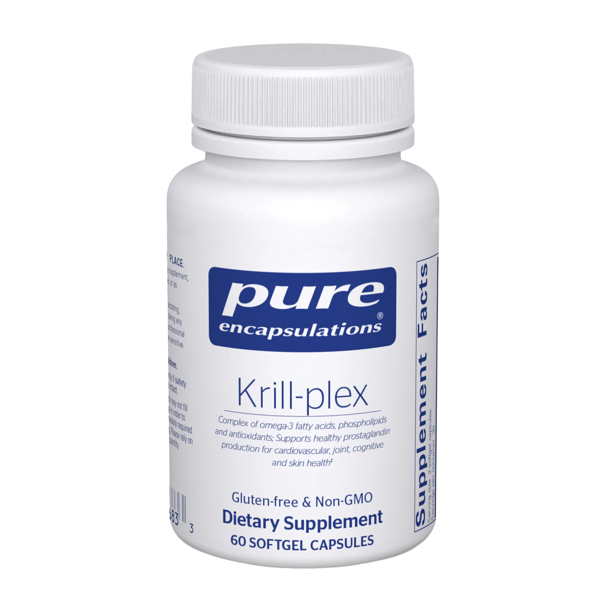 Krill oil provides an ideal essential fatty acid balance for healthy cardiovascular and platelet function. It is unique in that it offers a naturally occurring complex of omega-3 and omega-6 fatty acids, phospholipids and astaxanthin. Our Krill-Plex supplement offers support for heart, joint, brain and skin health. It also may support physical and emotional well-being during menstrual cycles.ā”