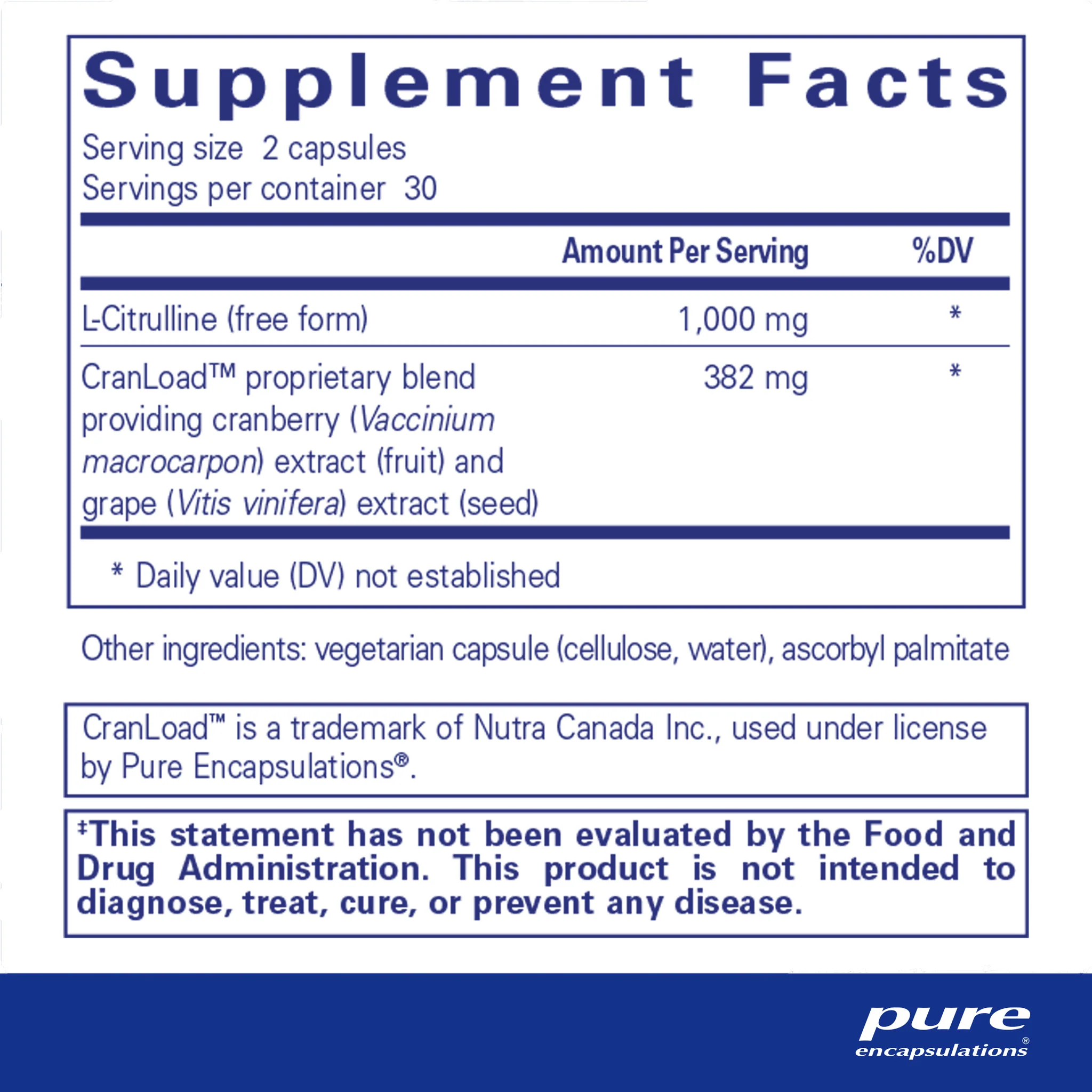 Research indicates that CranLoad™ may provide statistically significant support for healthy flow-mediated dilation. A similar physiological effect may have been demonstrated with the amino acid arginine. Citrulline is included to support nitric oxide production in blood vessel tissues. Research indicates that citrulline may increase plasma content of the amino acid arginine in a dose-dependent manner and to a greater degree than arginine supplementation.‡